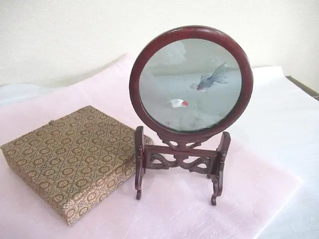 蘇繍の特徴は、非常に細かい針目で自然のモチーフ(花鳥、山水、人物など)を繊細に表現する点にあります。高品質なシルク糸を使用し、熟練の職人が一針一針丁寧に刺していくため、完成までに数ヶ月から数年かかることもあります。作品は絵画のように美しく、光の角度によって表情が変わる立体感があります。