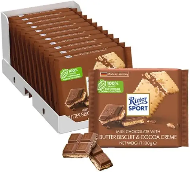 一方、Ritter Sportは正方形のコンパクトなパッケージが特徴で、20種類以上のフレーバーを揃えており、複数個まとめてセットにして渡すのが定番の渡し方です。