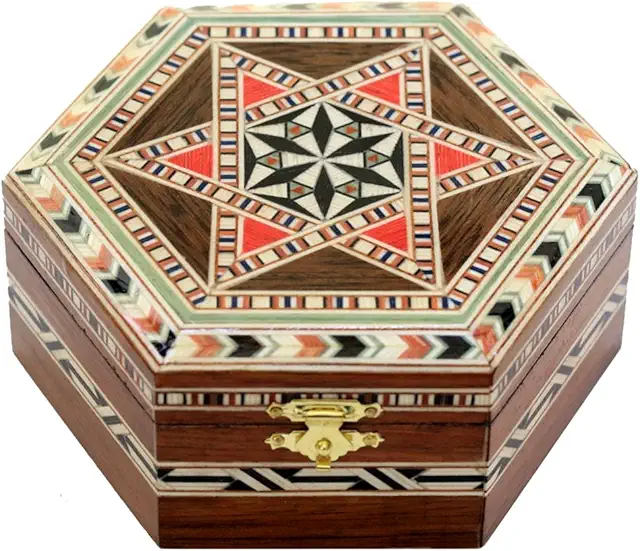 14世紀以降、この技法はほとんど変わることなくグラナダに受け継がれており、木材だけでなく貝殻・骨・真珠母などの素材を薄く削って組み合わせ、精緻な幾何学模様を作り出すという製法は現代の職人たちにも忠実に守られています。