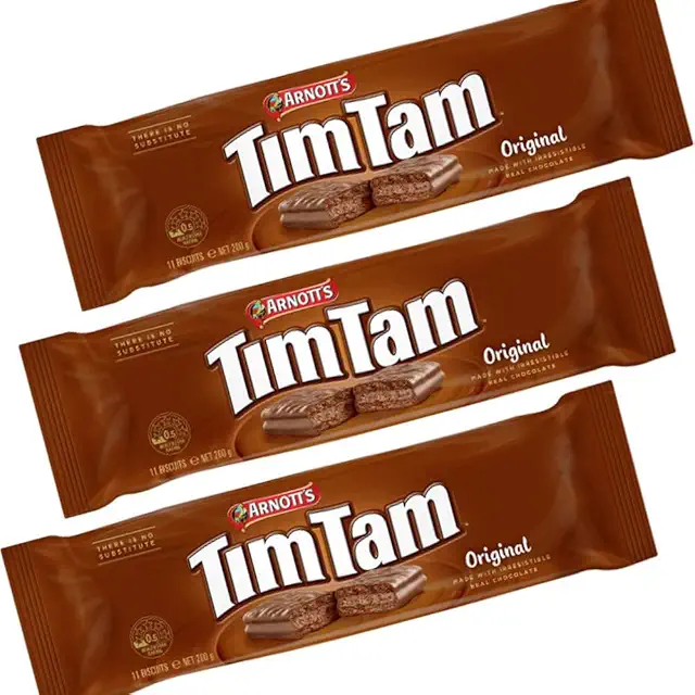 ティムタムは約6から12か月の日持ちがあり、ばらまき用のお土産としても最適です。価格も約A$2.00からA$4.00と手頃で、スーパーマーケットのWoolworths、Coles、IGAなどで購入できます。オリジナルフレーバーはもちろん、季節限定のフレーバーも登場するため、訪問時期によって異なる味を楽しめるのも魅力の一つです。