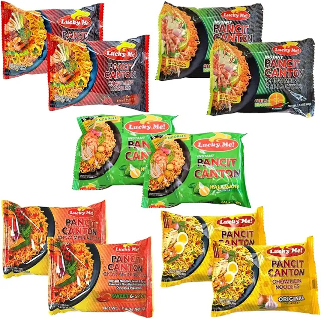 醤油ベースのオリジナル味のほか、唐辛子味や柑橘系果物カラマンシー味など、フレーバーが非常に豊富で現地の人々に人気があります。調理も簡単で、お湯で麺を戻してソースと混ぜるだけで本場の味が楽しめます。