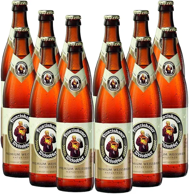 フランツィスカーナーはバイエルン地方を代表するヴァイスビア(白ビール)ブランドで、小麦を使用したフルーティーで爽やかな味わいが特徴です。フランクフルト空港の免税店では、定番のヴァイスビアやヘフェ・ヴァイスビアなどが販売されており、ドイツビールの多様性を楽しめる商品として人気があります。