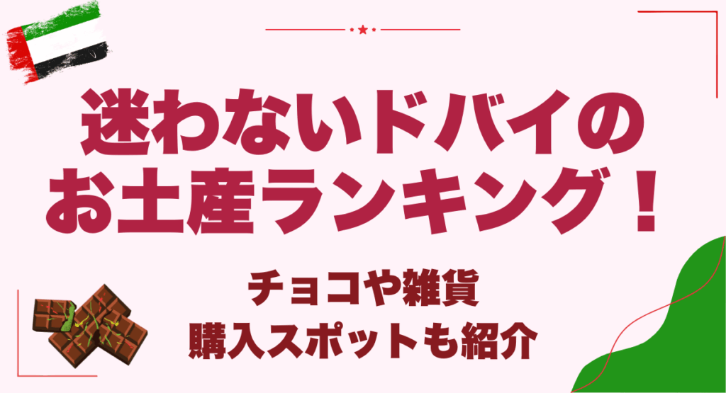 ドバイには中東特産のチョコデーツや高級デーツブランドのバティール、世界初のラクダミルクチョコレート、エキゾチックなターキッシュデライトやバクラヴァ、そして砂漠の芸術サンドボトルやアラビアンランプなど魅力的なお土産が豊富に揃っています。チョコデーツやクレオパトラ石鹸、ザアタルなどの食品やコスメはスーパーで手軽に購入でき、価格も手頃でばらまき用に最適です。バティールの高級デーツやアル・ナスマのラクダミルクチョコレート、オウド・フレグランス、アルミーラコスメなどは特別な贈り物として喜ばれます。