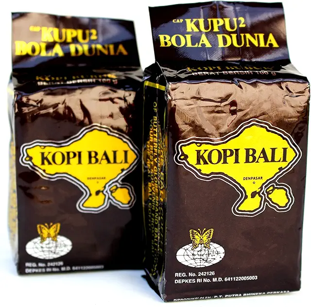 細かく挽いたコーヒー豆をお湯で煮出して上澄みを飲む伝統的なスタイルで、1袋30,000ルピア約290円とお手頃価格です。スーパーマーケットやお土産物屋さんで広く販売されており、コーヒー好きな方への贈り物として喜ばれます。パッケージもバリ島らしいデザインで、軽くて持ち運びやすい点も魅力です。