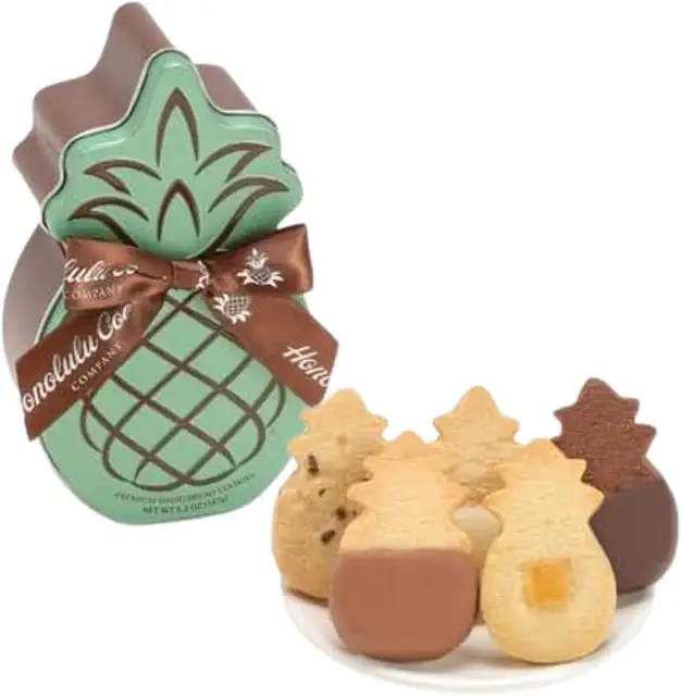 パイナップル型のクッキーで有名なハワイの高級クッキーブランドで、15ドル前後から購入可能、プレミアムなバターを使用したサクサクの食感とチョコレートのコーティングが絶妙でハワイ土産の定番として不動の人気を誇ります。